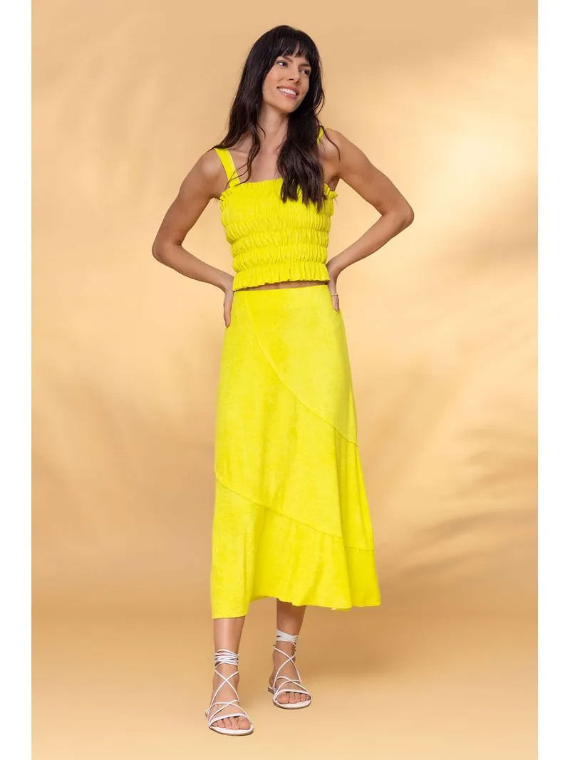 Saia Midi Atoalhada com Recortes sem dúvidas vai deixar qualquer look mais moderno e fashion. Possui cós com elástico embutido, recortes no no corpo da peça, comprimento midi e silhueta evasê. A Peça faz parte da nossa LINHA PUSCO SER, onde todas os tecidos possuem certificação de sustentabilidade.