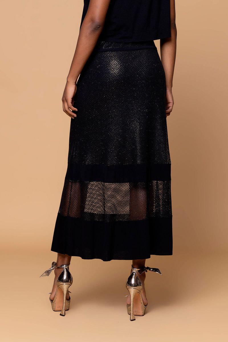 SAIA TELA FOIL COM MALHA irá deixa sua produção super fashion, ótima escolha para looks mais noturnos, combine com a REGATA TELA FOIL ou a BLUSA TELA FOIL COM MALHA da mesma família para uma composição super perfeita. Com pala regular no cós, silhueta godê, mix de tecidos na barra e entremeios, comprimento midi e possui forro mais curto que o comprimento da saia.