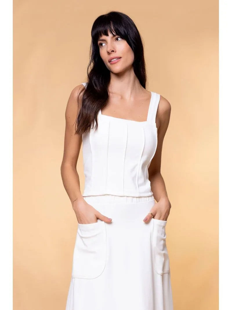 Top Corset é perfeito para uma composição super moderna e estilosa para looks variados podendo ser usado com calças jeans, shorts e saias. Possui silhueta justa, sem mangas, pala no decote e vivos no comprimento da peça. A Peça faz parte da nossa LINHA PUSCO SER, onde todas os tecidos possuem certificação de sustentabilidade.