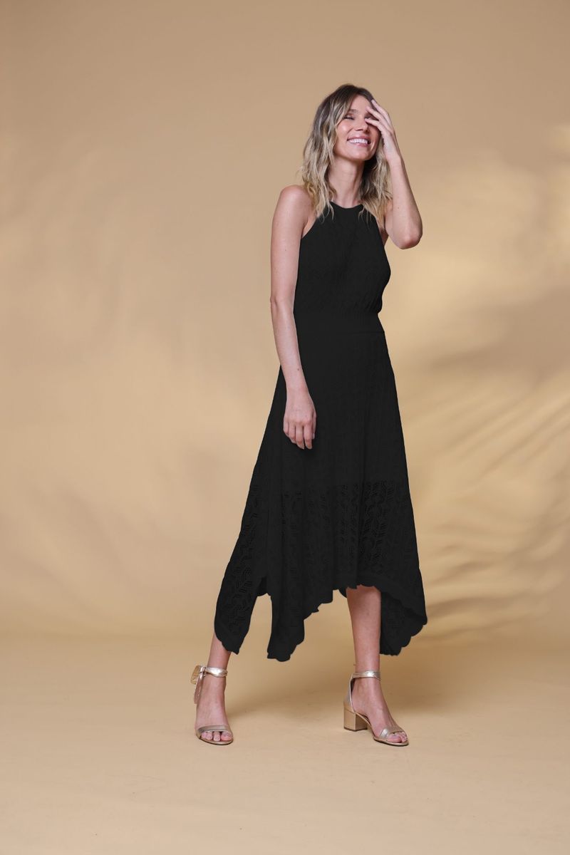 VESTIDO TRICOT ASSIMÉTRICO é chic e vai deixar sua produção ainda mais poderosa. Com saia evasê assimétrica, gola mais alta, comprimento midi, sem mangas, cintura marcada e forro mais curto do comprimento total da saia.