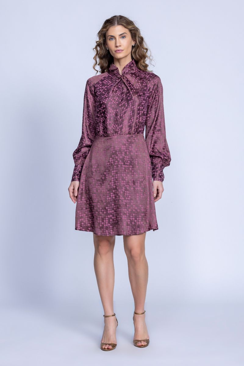 O VESTIDO CETIM JACQUARD é uma peça linda e super elegante. Seu diferencia está na gola que possui uma torção na parte da frente deixando sua produção ainda mais estilosa, perfeito para eventos mais diurnos e frescos. O vestido de tecido leve possui uma estamparia estilo gravataria deixando seu look super feminino.