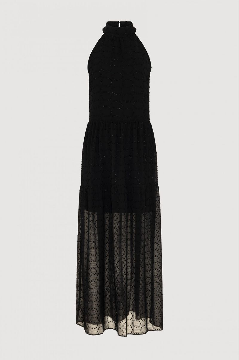 VESTIDO CHIFON DE BOLINHA E LUREX CAVA AMERICANA é um look perfeito para eventos mais nortunos, combine com sandálias e sapatos de salto deixando sua produção ainda mais chique. Com fios em lurex o vestido é feito em tecido de chiffon e tem um acabamento de textura aveludada, dando um charme a mais na peça.